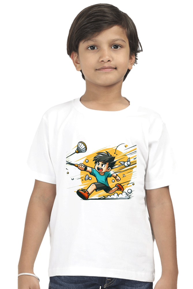 Ace your style with our Badminton Champion T-Shirt! Perfect for young badminton enthusiasts and future champions, this t-shirt features dynamic prints of badminton rackets, shuttlecocks, and action poses, capturing the excitement and agility of the sport. Comfortable and stylish, it's a must-have for any young athlete.