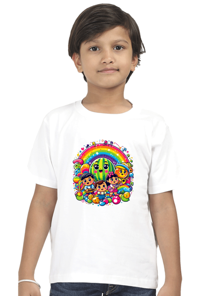 Join the musical fun with our Coco Melon Fun T-Shirt! Perfect for fans of the popular children's animated series, this t-shirt features cheerful prints of JJ, his siblings, and friends from Coco Melon, capturing the joy and playfulness of their adventures. Comfortable and stylish, it's a must-have for any young Coco Melon enthusiast.