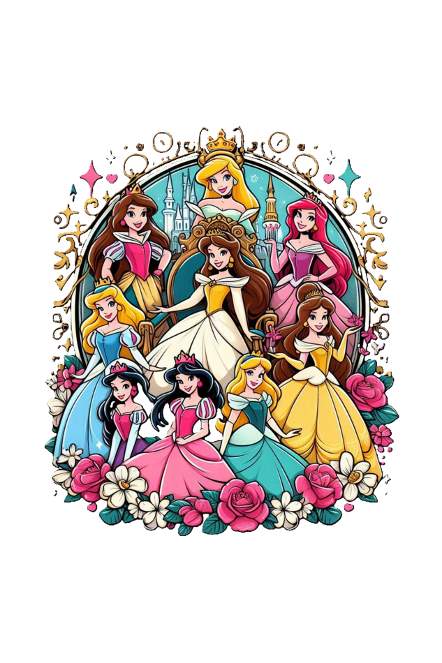 Celebrate the magic of Disney with our Disney Princess Adventure T-Shirt! Perfect for fans of Disney's iconic princesses, this t-shirt features enchanting prints of Cinderella, Snow White, Ariel, Belle, Jasmine, and more beloved princesses, capturing their elegance and courage. Comfortable and stylish, it's a must-have for any young dreamer.