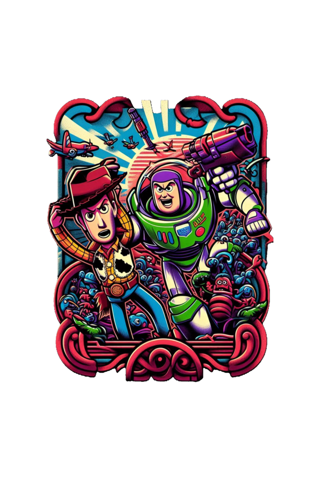 Step into the playful world of Andy's room with our Toy Story Adventure T-Shirt! Perfect for young fans of Disney Pixar's Toy Story, this t-shirt features fun prints of Woody, Buzz Lightyear, Jessie, and other beloved characters, capturing the excitement and camaraderie of their adventures. Comfortable and cheerful, it's a must-have for any Toy Story enthusiast.